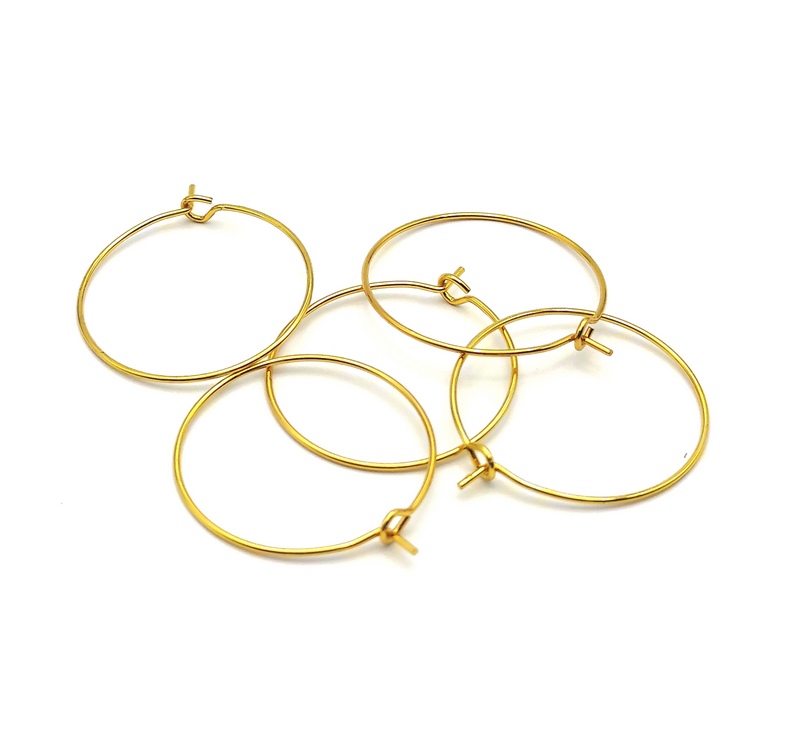 Kruhový náušnicový komponent vyrobený z nerezovej ocele 304. Galvanické pokovanie zlatou farbou.