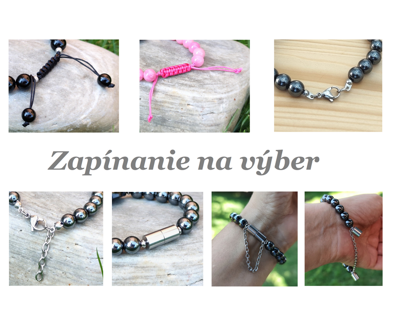 Náramok je ukončený plochým posuvným uzlom technikou nazývanou macramé. Uzol viažem pevne, neuvoľnuje sa pri nosení. Náramok je preto univerzálny a sadne na každú veľkosť ruky. Tento konkrétny na fotkách je vhodný od obvodu zápästia 14 cm. Maximálna veľkosť roztiahnutia je 22 cm. Pri objednávke, prosím, si preto pre istotu zmerajte obvod zápästia aj najširší obvod cez dlaň. Veľkosť viem prípadne upraviť.