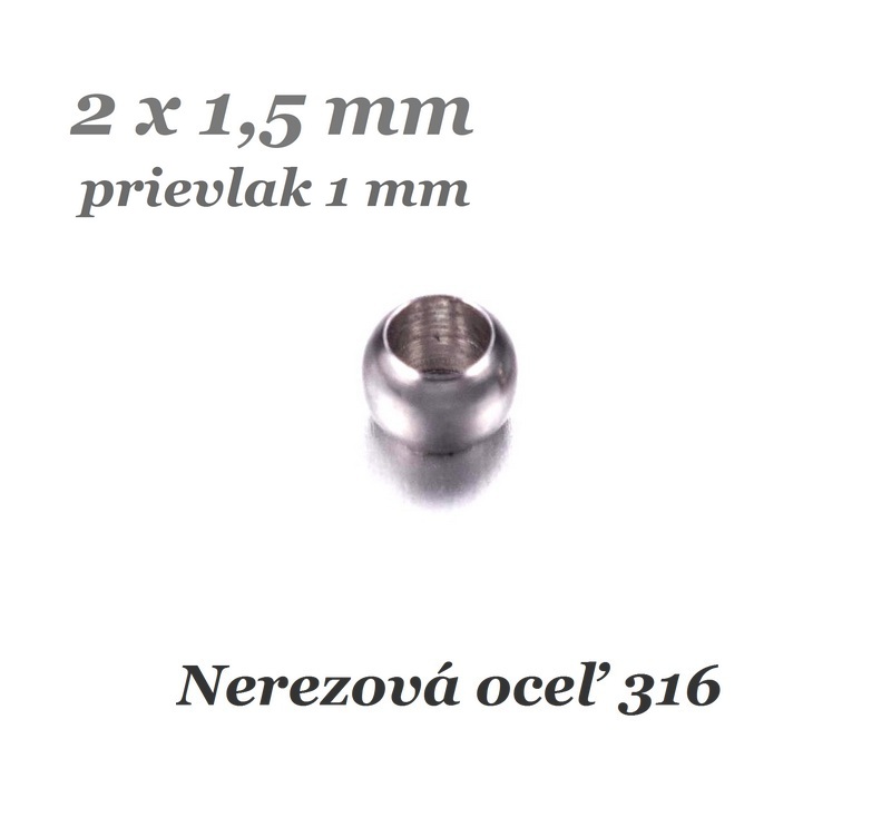 Úvod » Chirurgická oceľ - komponenty » Zatláčacia korálka 2x1,5mm, prievlak 1mm - nerez.oceľ 316